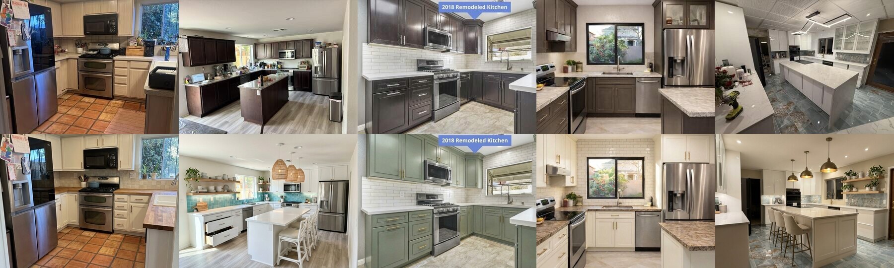 The consistent surprise: the cheapest, least dramatic change (warm white paint + brass hardware) produced the best results across these five. The kitchens that tried to do more weren't always better. They were just different.